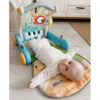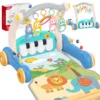 Постелката има лента с цветни висулки във формата на животни и огледало, които се движат пред погледа на бебето, както и музикални бутони, които бебето ще рита с крачета и те ще издават звуци, които ще го забавляват и ще стимулират допълнително слуха.