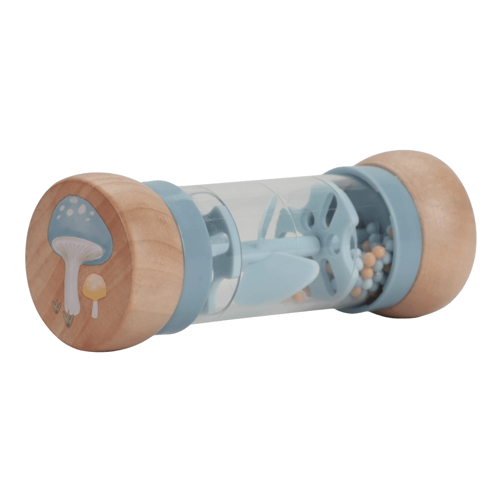 Тази сладка дървена дрънкалка се търкаля и търкаля, издавайки звънливи звуци, докато върви. Децата обичат да я гонят, хващат и разклащат.