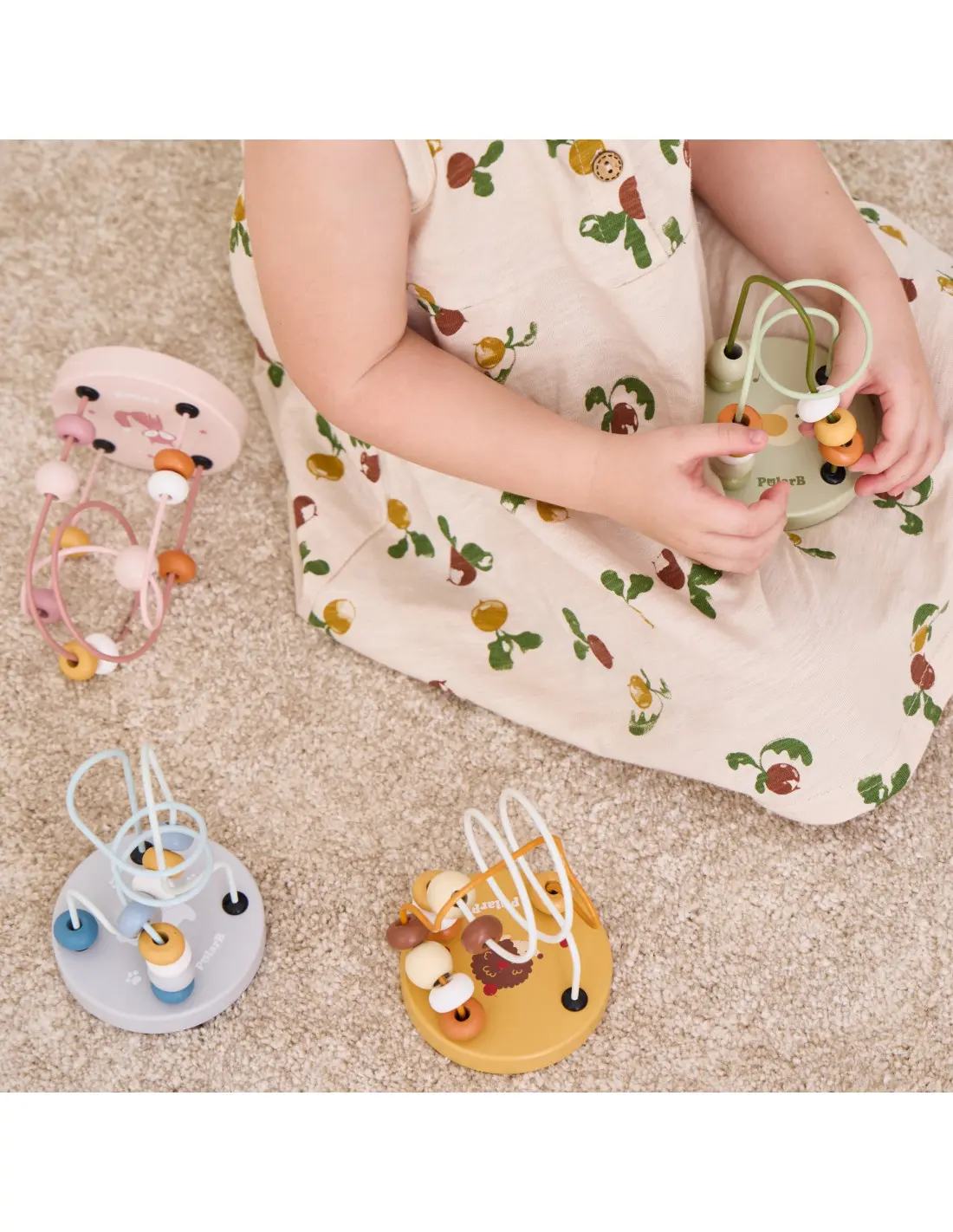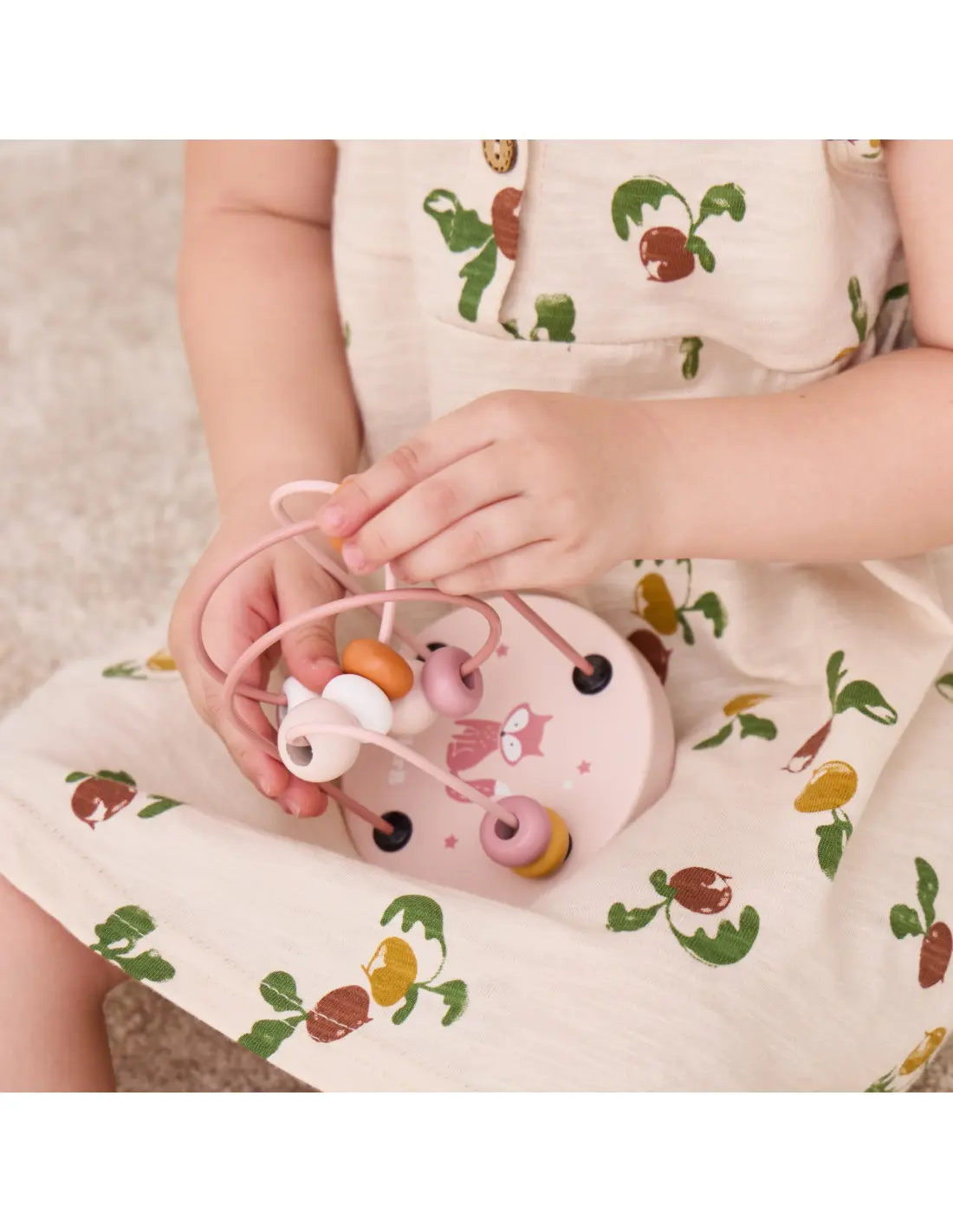 Тази дървена играчка е чудесен сензорен инструмент, който позволява на вашето дете да тренира сръчността на ръчичките по забавен начин. Промушвайки 12-те мъниста през двете извити цветни спирали, детето развива не само своята фина моторика, но и прецизността на движенията си. За да успее, то трябва да прави съзнателни движения, което стимулира концентрацията и вниманието му.
