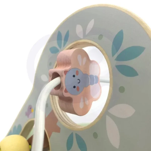 С три различни трасета и цветни дървени мъниста, включващи и сладки горски животни, лабиринтът предлага увлекателно предизвикателство. Всяко преместване на мънисто по маршрута е малко приключение, което стимулира логическото мислене и концентрацията. Малките ръчички ще се упражняват да следват извитите пътеки, а успешното преминаване на всяко трасе ще донесе чувство на постижение и увереност.