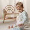 Играчката е изработена с внимание към детайла, без остри ръбове и перфектно шлайфани елементи. Цветовете са красиви и наситени, а за тях са използвани нетоксични, щадящи бои.