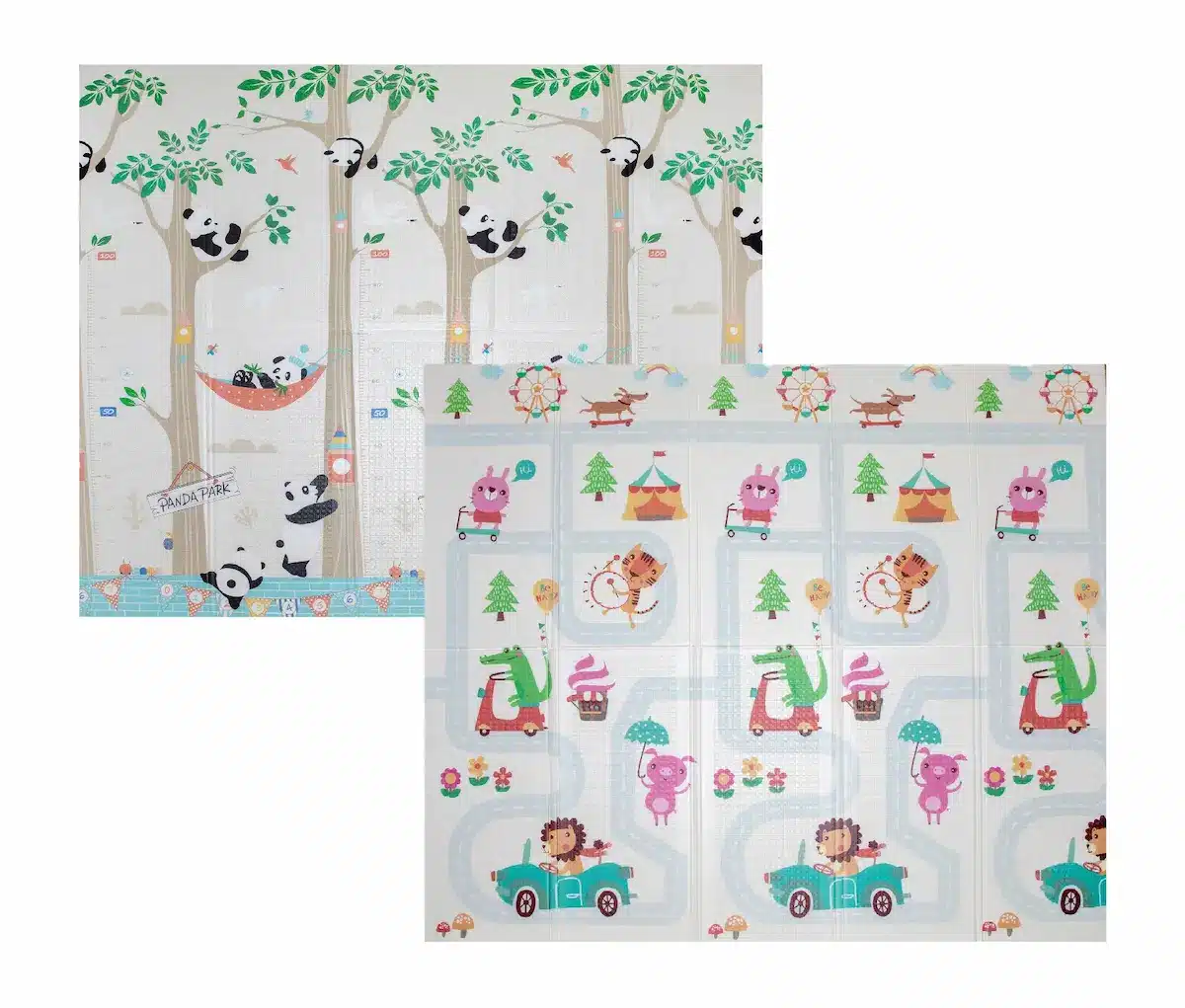 Килимче за игра Circus Fun & Panda Park 180х200 см от XPE пяна – дебелина 1 см | Двулицево, сгъваемо, безопасно за бебета и деца