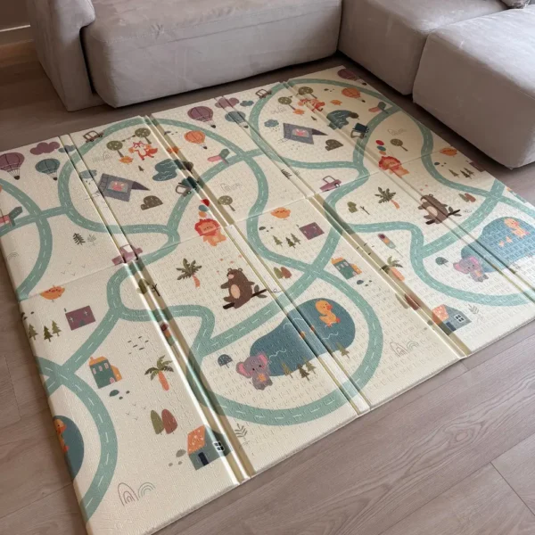 Създадено за бебета от 0+ месеца, това меко, термоизолиращо и водоустойчиво килимче с размер 180х200 см осигурява безопасна зона за пълзене, игра и първи стъпки. Изработено от висококачествена XPE пяна, то омекотява всеки удар и пази детето от студен под. Подходящо за употреба у дома, в градината, на плажа или при пътуване. Лесно се сгъва и се пренася с включената чанта.