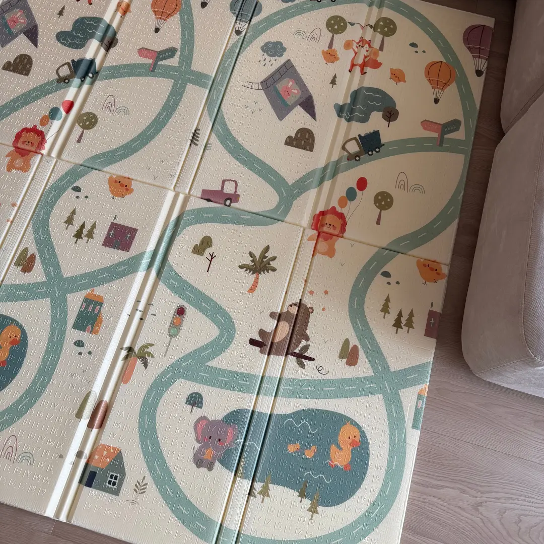 Създадено за бебета от 0+ месеца, това меко, термоизолиращо и водоустойчиво килимче с размер 180х200 см осигурява безопасна зона за пълзене, игра и първи стъпки. Изработено от висококачествена XPE пяна, то омекотява всеки удар и пази детето от студен под. Подходящо за употреба у дома, в градината, на плажа или при пътуване. Лесно се сгъва и се пренася с включената чанта.