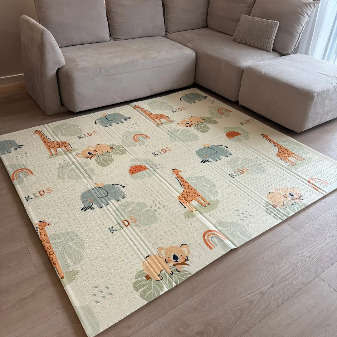 Дебело килимче за игра с дебелина 2 см и размер 180 х 200 , нежни цветове , подходящо от новородени бебета. Дизайн Сафари