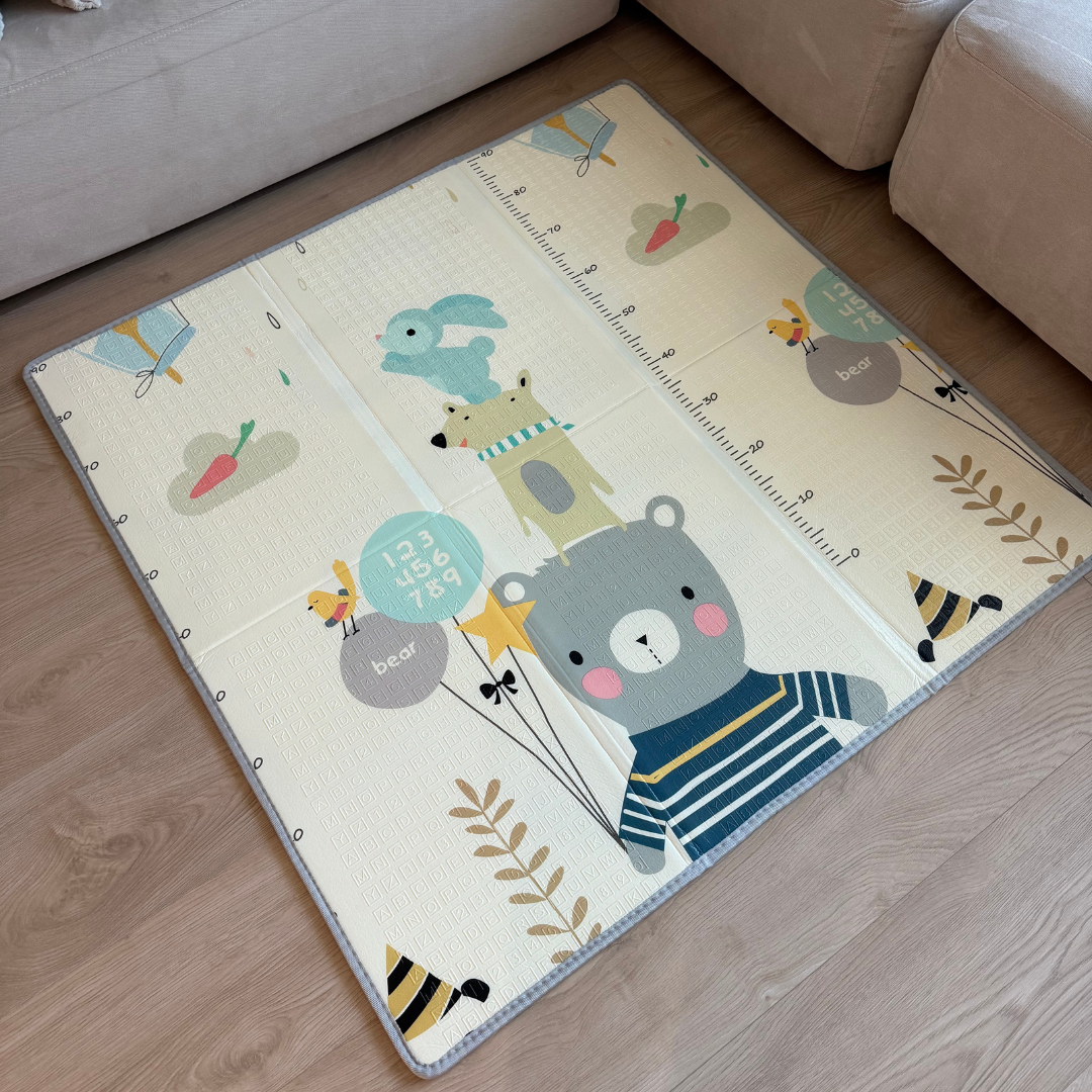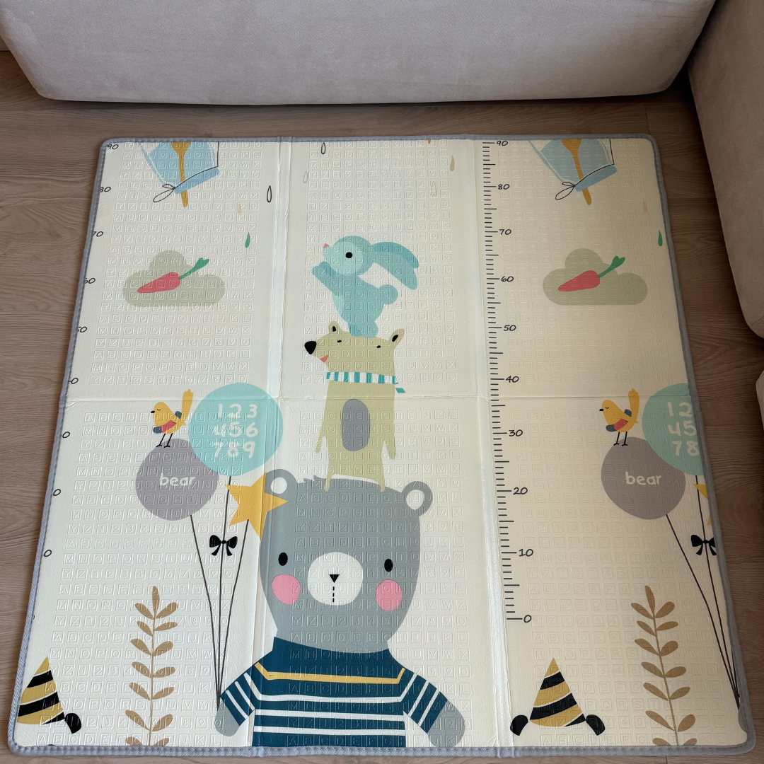 Това сгъваемо бебешко килимче 120×120 см е създадено за родители, които искат максимум от минималното пространство. С дебелина 1 см, то предоставя меко и безопасно покритие, като същевременно запазва лекотата и компактността – перфектно за апартаменти, малки стаи или директно в кошара.