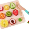 Компелтът включва: дъска, нож и 9 зеленчука от по 2 части.