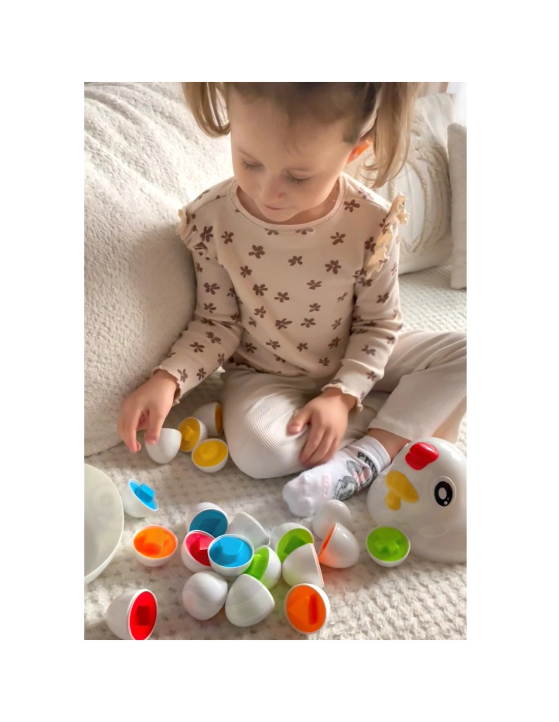 Всяко яйце се състои от 2 половини, които трябва да бъдат съчетани според специфичната форма и цвят.
